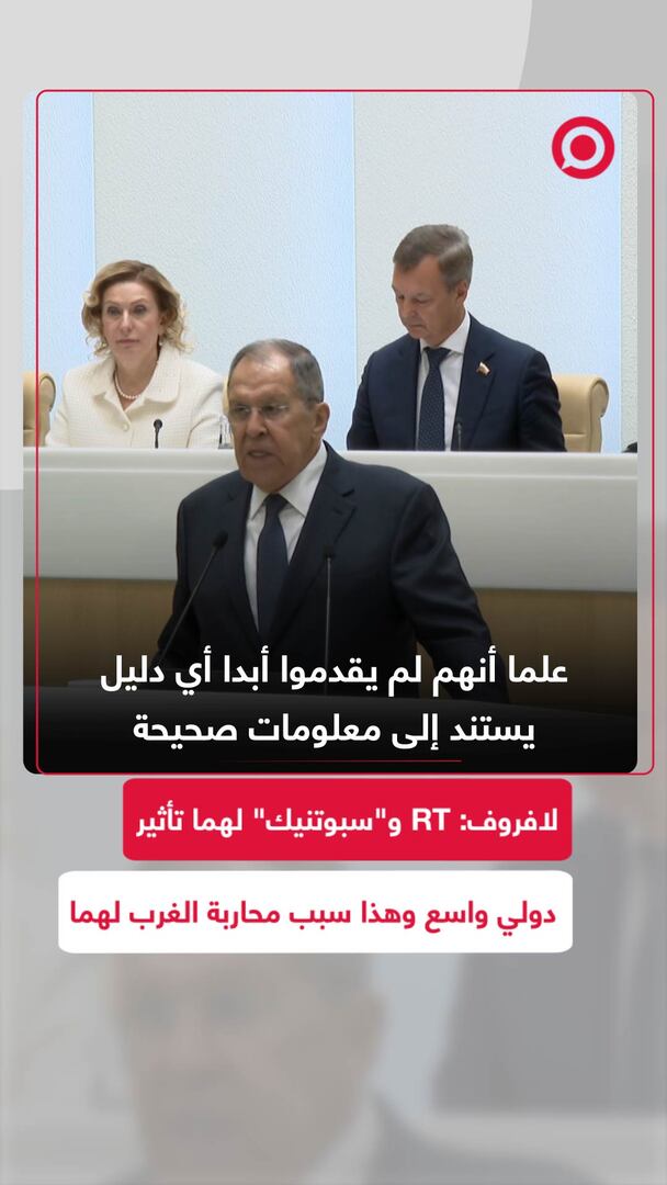 Play/Pause Mute/Unmute لافروف: RT و"سبوتنيك" لهما تأثير دولي واسع ولهذا السبب تُحارَبان في الغرب Save post Share Facebook X VK.com Telegram